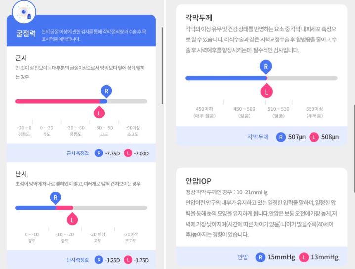 렌즈가 삽입될 공간이 충분한지 안구 공간 측정이 정확히 이루어져야 수술 가능 여부, 렌즈 사이즈,
